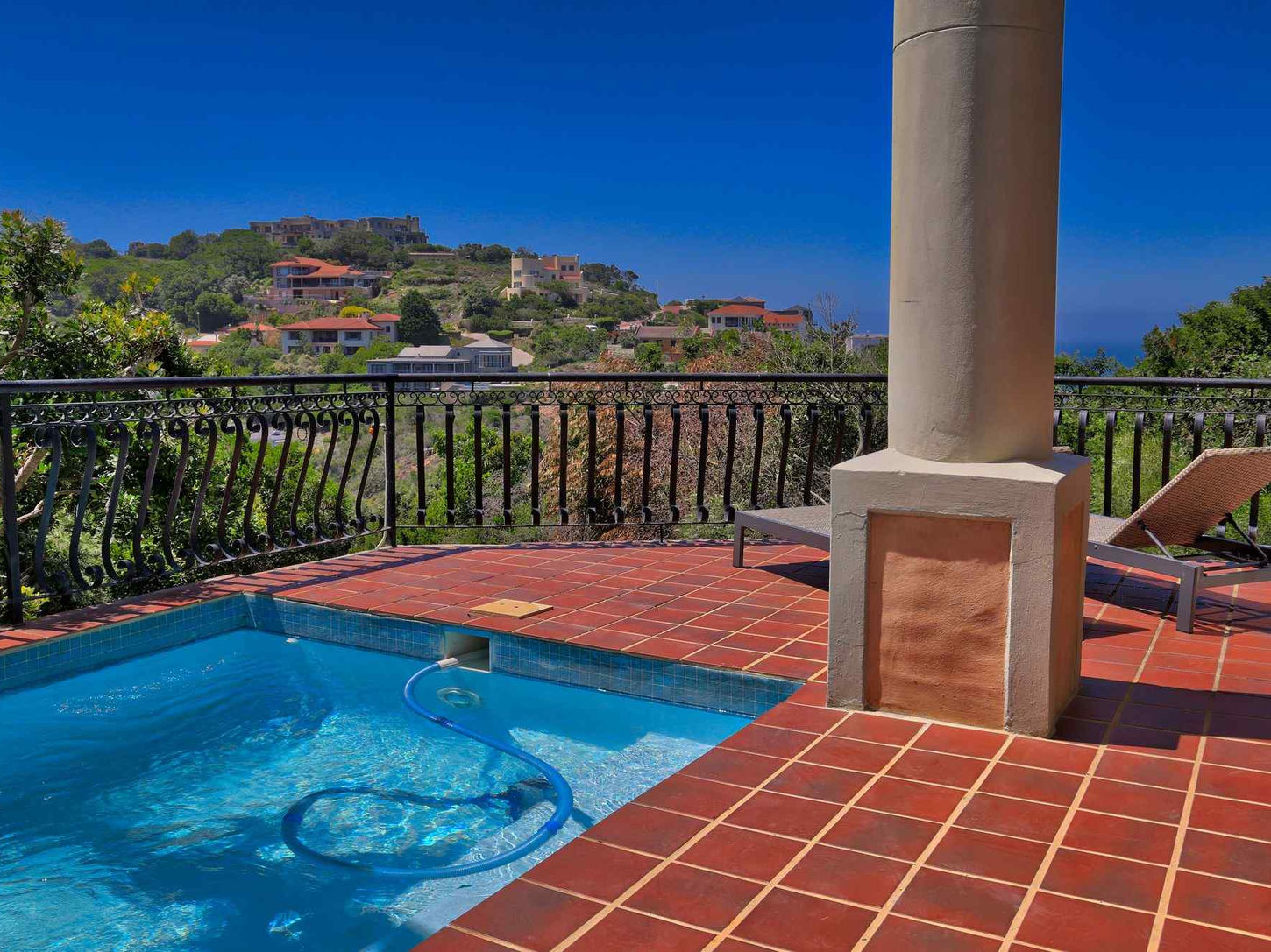 Outside, a sanctuary awaits in the form of a sheltered heated swimming pool, where you can indulge in moments of relaxation beneath the azure skies of Knysna.